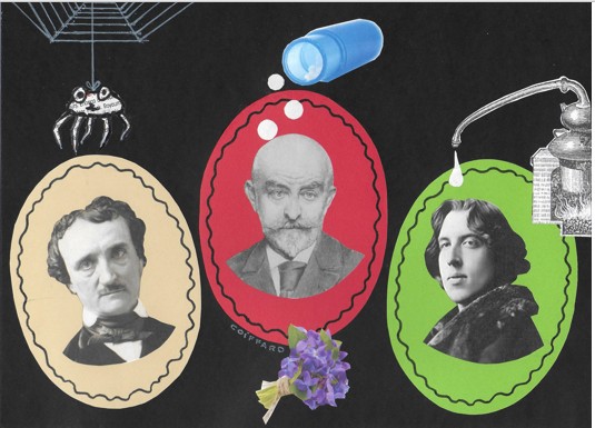 Il y a d’abord Edgar Poe (1842) qui nous fait frissonner,1 en ouvrant la porte d’un château hanté… Puis Huysmans (1884) nous prend « A rebours » et nous emmène dans les délires créatifs d’un héros pas très héroïque, un certain des Esseintes qui pose les bases de l’homéopathie olfactive et se glisse dans la peau d’un grand parfumeur.2 Les effluves de parfums concoctés par notre parfumeur légèrement névrosé sont alors venus titiller les narines d’Oscar Wilde qui s’est empressé d’initier son personnage, Dorian Gray, à l’art de la formulation des parfums (1890). Devant son alambic, Dorian se rend compte que les parfums obtenus peuvent influer sur ses états d’âme ; il pose les bases de l’aromathérapie.3 Oscar Wilde, quant à lui, pratique une arithmétique très personnelle (1 roman + 1 roman = 1 roman) en mixant les idées de ces deux prédécesseurs.