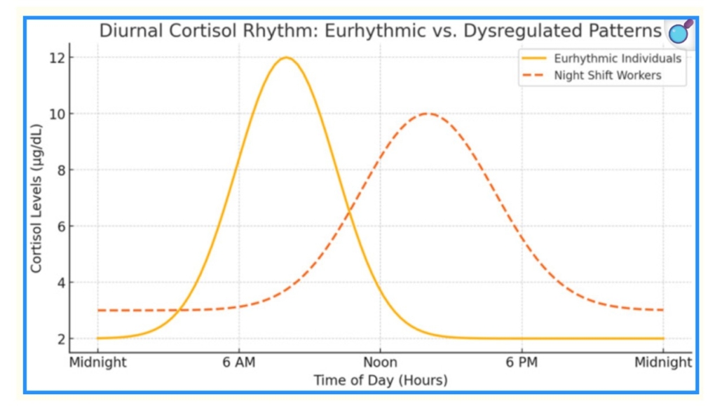 23 Andreadi A, Andreadi S, Todaro F, Ippoliti L, Bellia A, Magrini A, Chrousos GP, Lauro D. Modified Cortisol Circadian Rhythm: The Hidden Toll of Night-Shift Work. Int J Mol Sci. 2025 Feb 27;26(5):2090