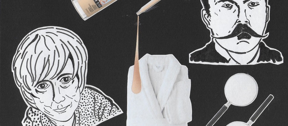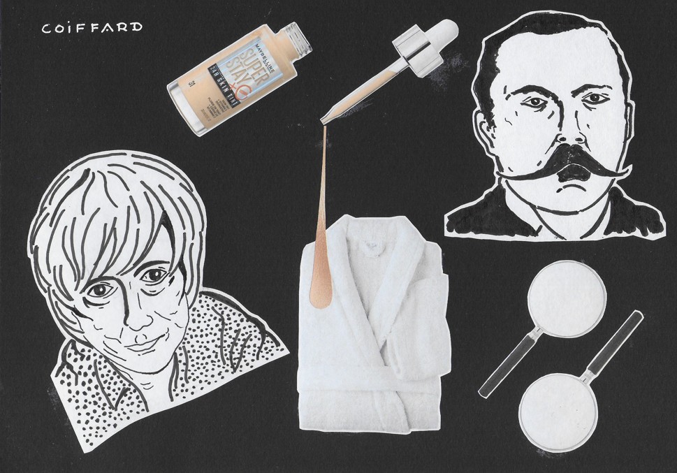 Dans la salle de bains de Mathilde, Matthieu découvre « des produits de beauté à la pelle, des fleurs séchées, des serviettes en grosse éponge accrochées un peu partout » ! Il y a aussi un peignoir, avec « une trace de fond de teint sur le col » ; cette trace de fond de teint témoigne, selon Matthieu, de la précarité financière de Mathilde (« et le prix des teinturiers expliquait cette petite tache sur le col de son peignoir »).