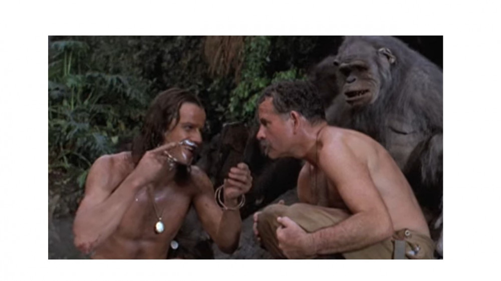 Les premiers mots appris par Greystoke : « rasoir, miroir » !