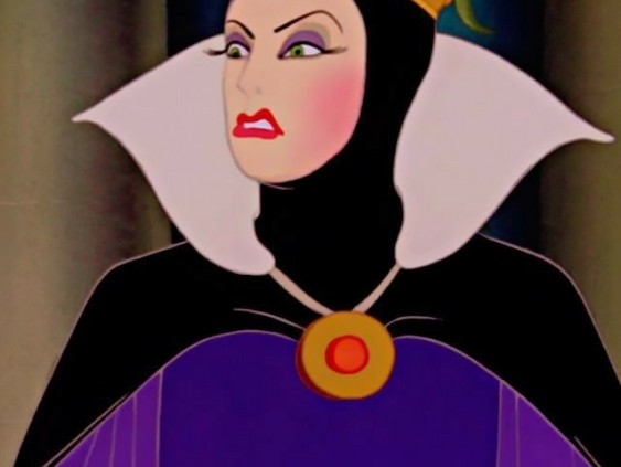 L’ignoble belle-mère de la gentille Blanche-neige est la reine du maquillage. Sourcils épilés et retracés au crayon pour une ligne parfaite, paupières passées au fard violet, trait d’eyeliner au ras des cils de la paupière supérieure se terminant par une célèbre virgule, œil de biche, base de teint pour masquer les imperfections, blush pour des joues aussi belles que des pommes, rouge à lèvres sanguin, pour des lèvres impeccables.