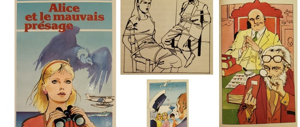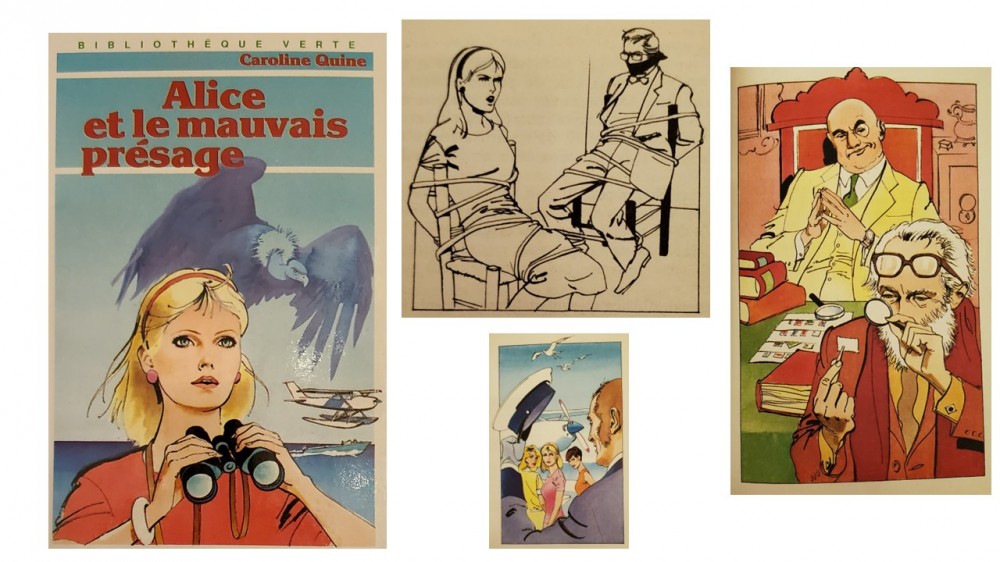 Déguisée en domestique, une perruque sur ses magnifiques cheveux blonds, Alice arrive à découvrir le fin mot de l’affaire qui tourmente Mme Palmer. Sans perruque, ses beaux cheveux au vent, une paire de jumelles dans les mains, Alice scrute tout ce qui se passe chez son riche voisin, un certain Angus ! Dans cette aventure qui se passe sous le soleil, le farniente n’est pas de mise. Alice est là pour travailler, pas pour bronzer !