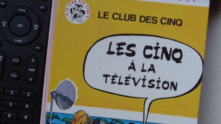 1 Les cinq à la télévision, une nouvelle aventure des personnages créés par Enid Blyton racontée par Claude Voilier – images de Jean Sidobre, Hachette, bibliothèque rose, 1980, 186 pages