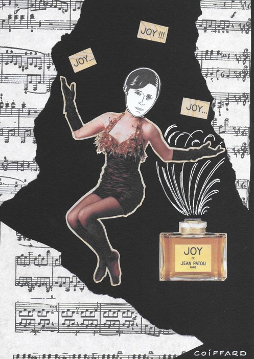 Rien n’y fait, même pour complaire à son Daddy, Joyce n’accepte pas de diminuer sa consommation cosmétique : « Elle s’approcha de lui, tendit une joue délicatement fardée, le coin de sa bouche peinte. » « Tu te maquilles trop, Joy » ! Pas du tout, répond Joyce, qui trouve son teint trop blanc, qui « veille trop, fume trop » et a donc besoin des cosmétiques, pour parer à tous ces éléments délétères pour la qualité de l’épiderme.
