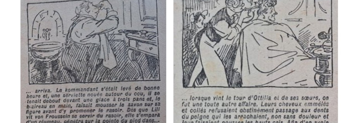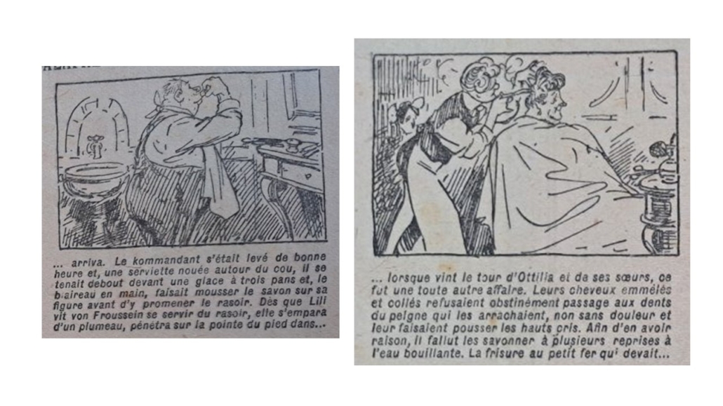 Nous avons évoqué les problèmes cosmétiques survenus à la famille du Kommandant von Froussein, lors du mariage d’Ottilia.1 En fouillant dans la pile de journaux Fillette, nous retrouvons l’épisode annonciateur des désastres esthétiques survenus ce jour mémorable. Le 19 mai 1918, les lectrices découvrent, ainsi, un nouvel épisode des aventures de « L’espiègle Lili ».